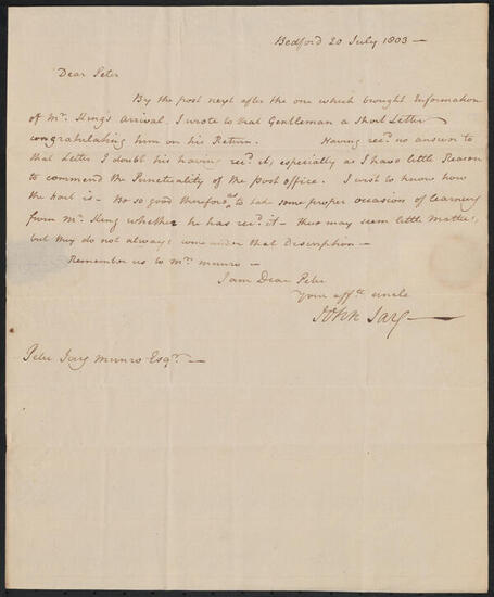 Letter from John Jay to Peter Jay Munro, July 6, 1803