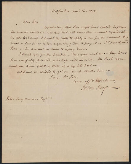 Letter from John Jay to Peter Jay Munro, November 1, 1804