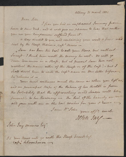 Letter from John Jay to Peter Jay Munro, March 18, 1799