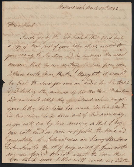 Letter from John Peter De Lancey to Thomas Jones and Anne De Lancey Jones, March 6, 1792