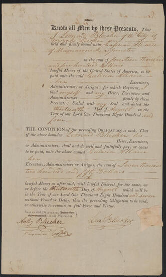 Receipt of mortgage, issued from Peter and Calicia Allaire to Leonard Bleecker, August 13, 1807