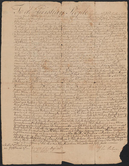 Deed issued by Nehemiah Palmer to his son, Nathan Palmer, June 1, 1750