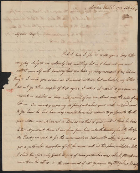Letter from John Quincy Adams to Peter Jay Munro, November 10, 1784