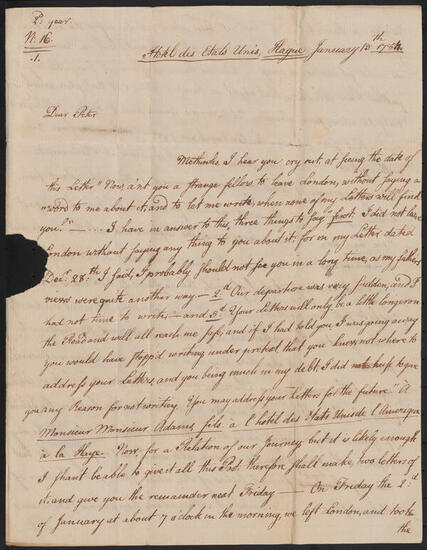 Letter from John Quincy Adams to Peter Jay Munro, January 16, 1784