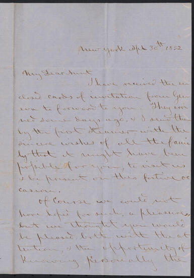 Letter from Anne Charlotte McAdam to Edward Floyd De Lancey, April 25, 1852