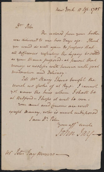 Letter from John Jay to Peter Jay Munro, September 19, 1799
