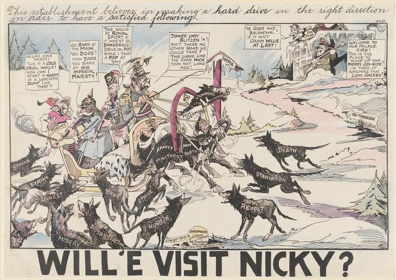 Street Scenes, etc. Showing Displays of Liberty Loan Posters during World War I [James Montgomery Flagg working on his Liberty Loan poster.]