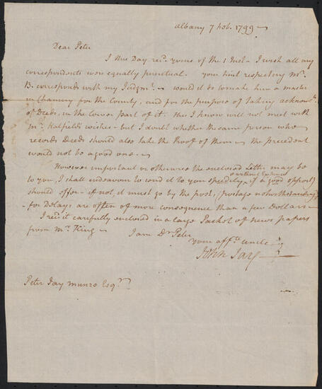 Letter from John Jay to Peter Jay Munro, February 1, 1799