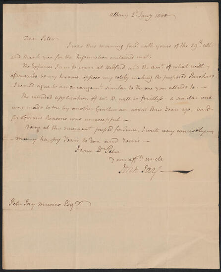 Letter from John Jay to Peter Jay Munro, October, 1800