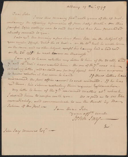 Letter from John Jay to Peter Jay Munro, December 17, 1800