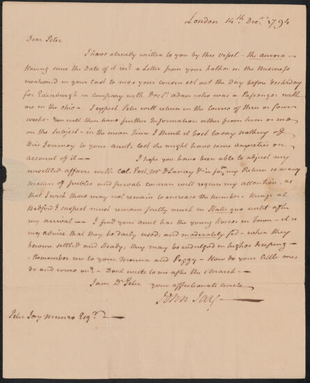 Letter from John Jay to Peter Jay Munro, December 9, 1794