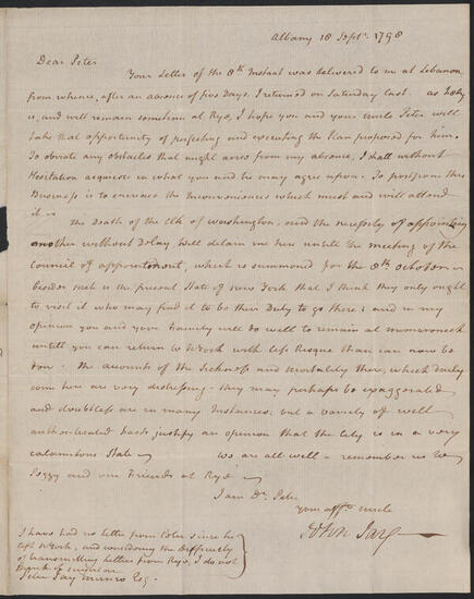 Letter from John Jay to Peter Jay Munro, September 19, 1799