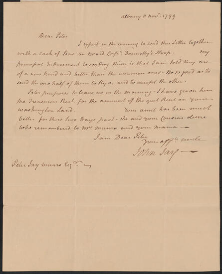Letter from John Jay to Peter Jay Munro, November 6, 1799