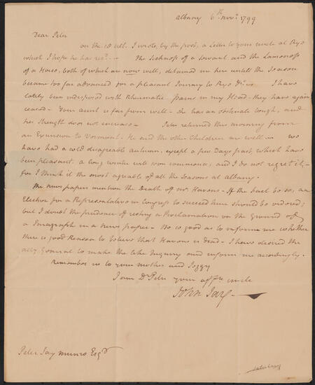 Letter from John Jay to Peter Jay Munro, November 25, 1799
