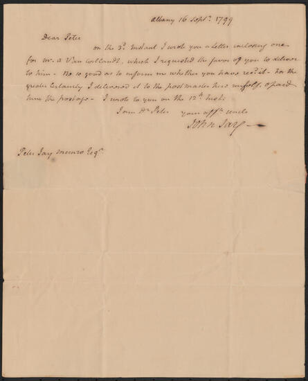 Letter from John Jay to Peter Jay Munro, September 19, 1799