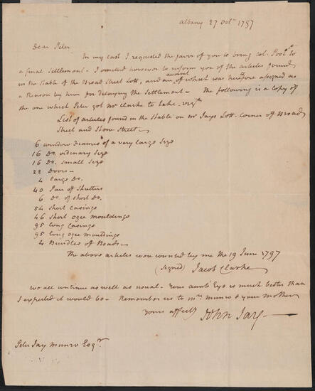 Letter from John Jay to Peter Jay Munro, October 14, 1797