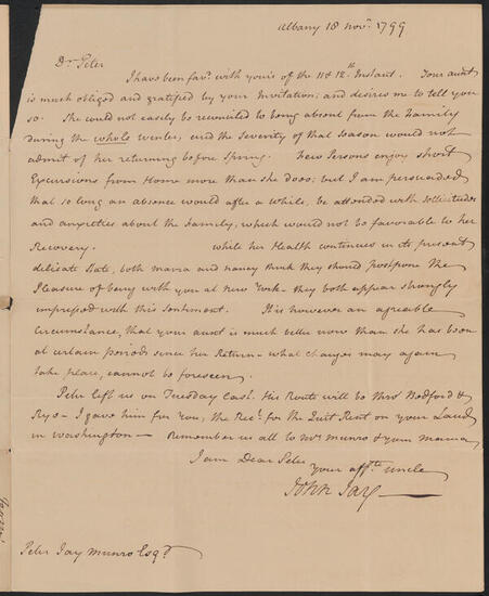 Letter from John Jay to Peter Jay Munro, November 6, 1799