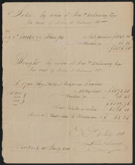 John De Lancey in account with John Peter De Lancey, May, 1806 - July 3, 1807