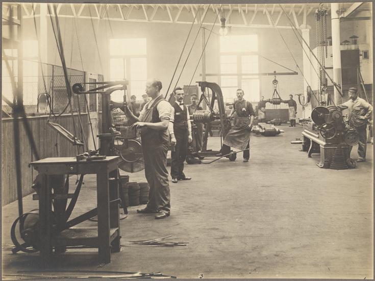 [Workers in a Brooklyn Rapid Transit machinery shop.]