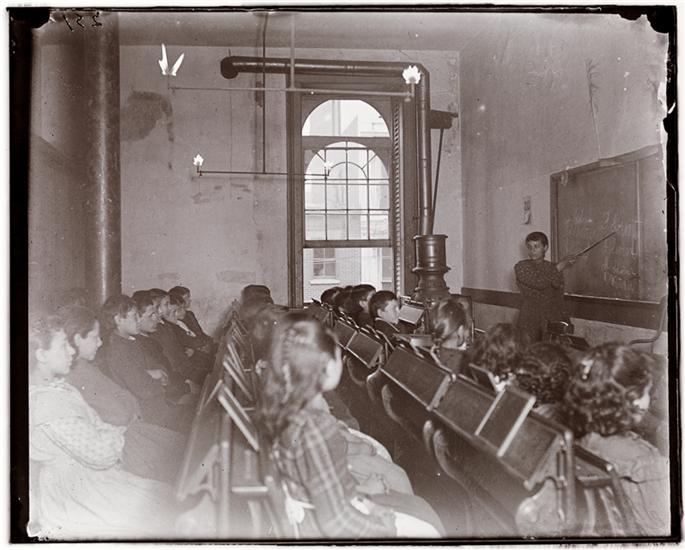 East Side Public Schools 2. Class without desks in the Essex Market School.