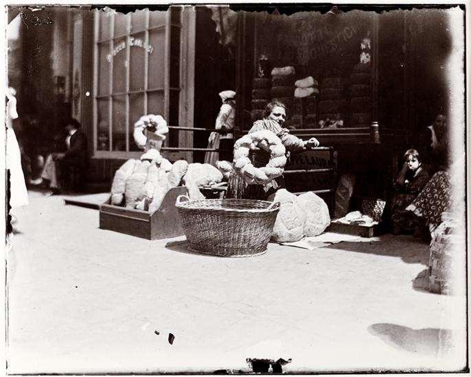 A Vegetable Stand in the Mulberry Street Bend with Myself [Jacob A. Riis] in the picture.