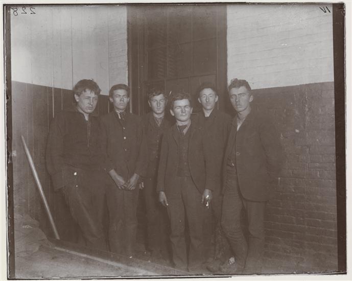 Police Station Lodging Room 4. Oak Street Station, Six boys picked out of the draft in the men's lodging room.