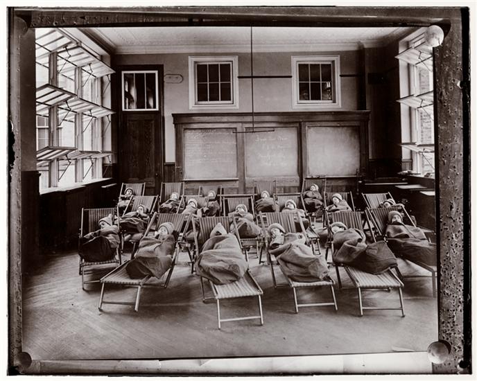 Night school in the west side lodging house. Edward, the little pedlar, caught napping.