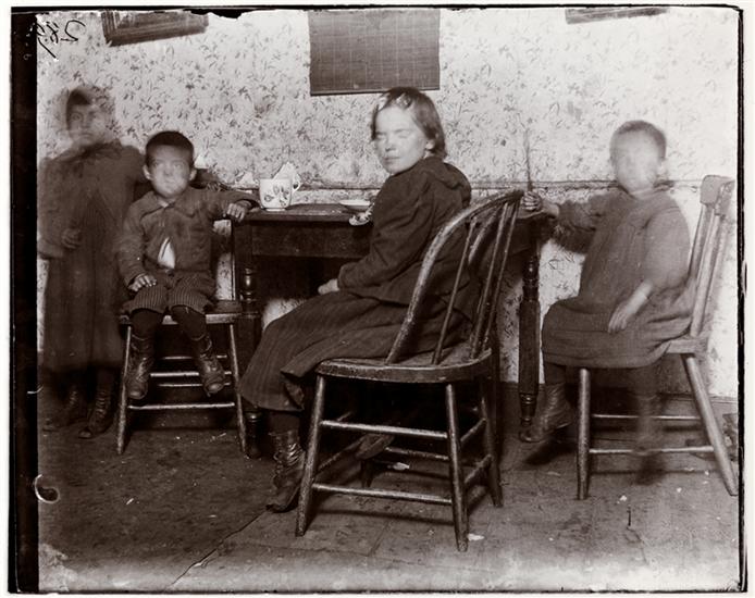 Children in "The Ship," destroyed by B. of Health in 1897, after the visit of Roosevelt & myself [Jacob A. Riis] there.