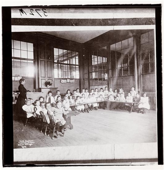 East Side Public Schools 2. Class without desks in the Essex Market School.