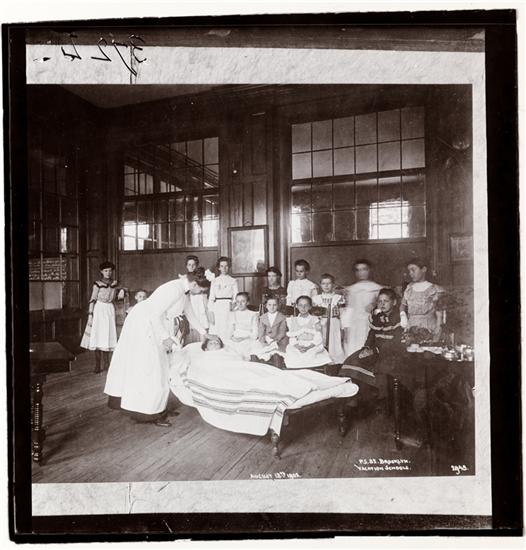 Description Children in a first aid class in summer school at Brooklyn's P.S. 32.