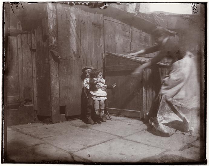 Two Greek children in Gotham Court debating if Santa Claus will get to their alley or not. He did.