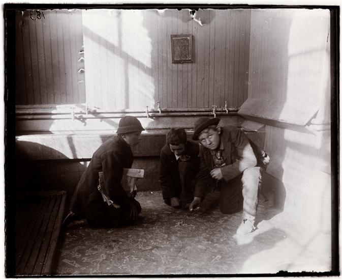 "Shooting craps" in the hall of the Newsboys' Lodging House.