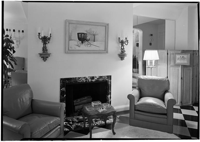 Residence of William W. Baldwin, 33 Sutton Place South. Living room to fireplace.