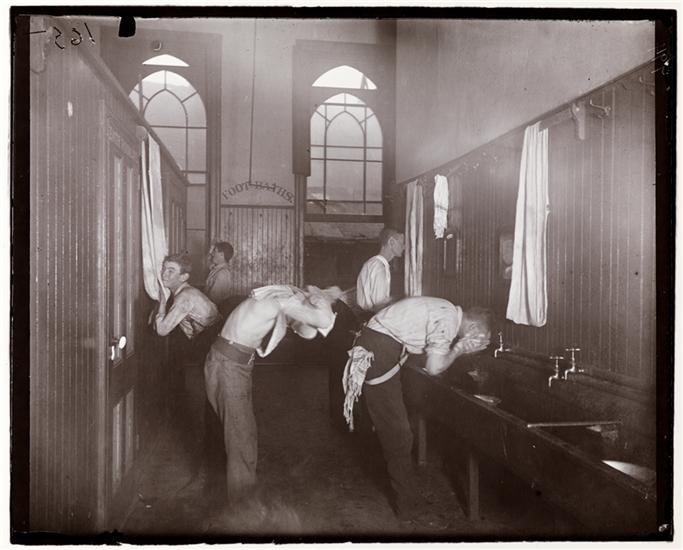 City Lodging House, 23rd Street & First Avenue -- lodgers taking compulsary bath, "Well-nourished" fat.