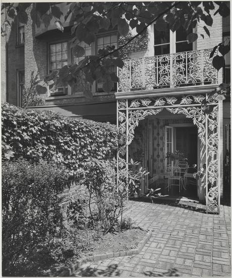 A. Pool in a back yard garden on West Eleventh Street, May 23, 1949 ; B. Backyard garden on West Tenth Street, April 26, 1954