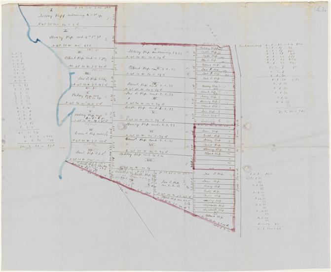 [Map of Kip family lots in Kips Bay, bordered by Post Road and the East River]