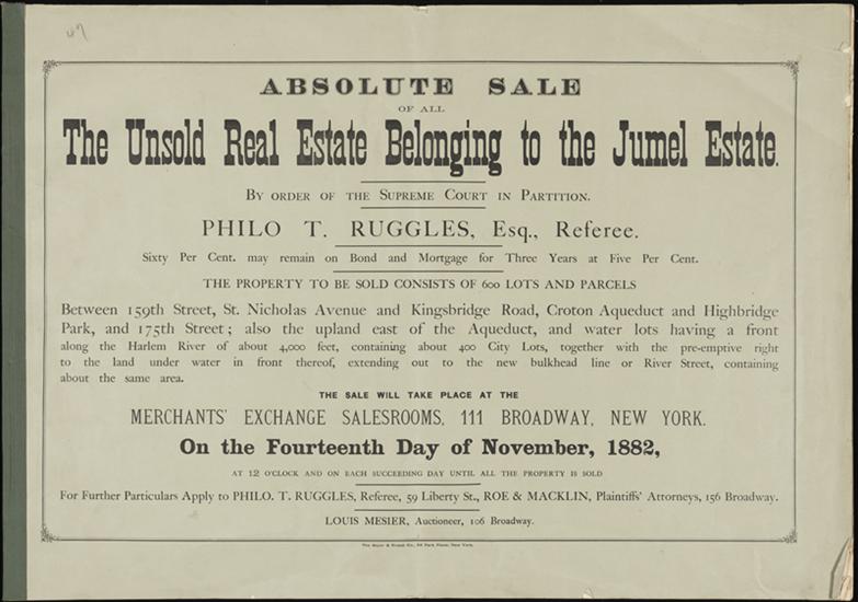 Absolute Sale of All the Unsold Real Estate Belonging to the Jumel Estate.