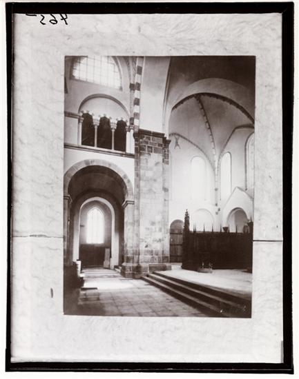 Ribe Domkirke. The "pagan" that was uncovered when the white wash of centuries was removed in the restoration (1904) -- see him up in the top of the arch to the left. He is supposed to be protecting a