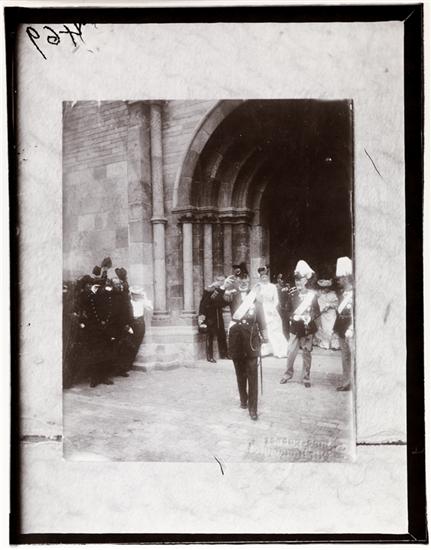 Ribe, King Christian coming out of the Domkirke on the day of its dedication, August 7th, 1904. The crown princess behind him.
