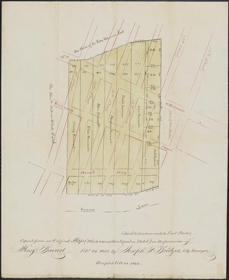 [Map of lots from Greenwich Lane to 14th Street at intersection of Seventh Avenue]