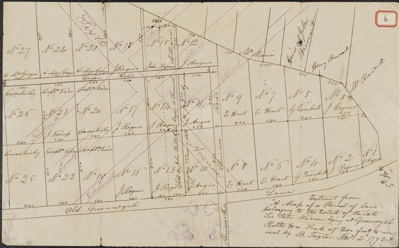 [Copy of a Map of the Lands Lately Belonging to the Estate of the Late Sir Peter Warren Lying at Greenwich in the Outlands of the City of New York, Surveyed August 1773]
