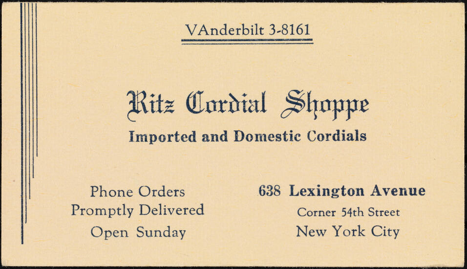 The Finest of Wines, Liquors, Cordials and Gins Are Available
