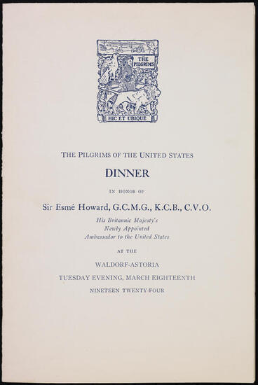 Dinner in Honour of His Grace the Lord Archbishop of Canterbury by the Pilgrims of the United States
