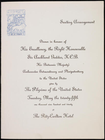 The Pilgrims of the United States Dinner in Honor of Sir Esmé Howard, G.C.M.G., K.C.B., C.V.O.