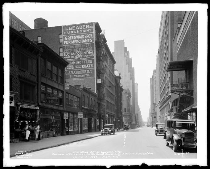 37th Street at the S.W. corner of 7th Avenue. Garment Center building.