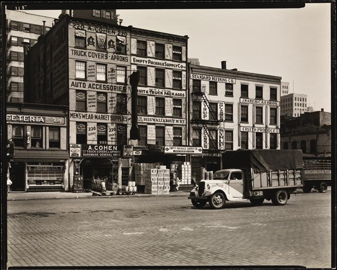 Inscription / technical details "115" inscribed on negative, print recto top left. | Federal Art Project stamp and title, location, date and Abbott number inscribed in pencil on print verso, center. | "Duplicate" stamped on print ve