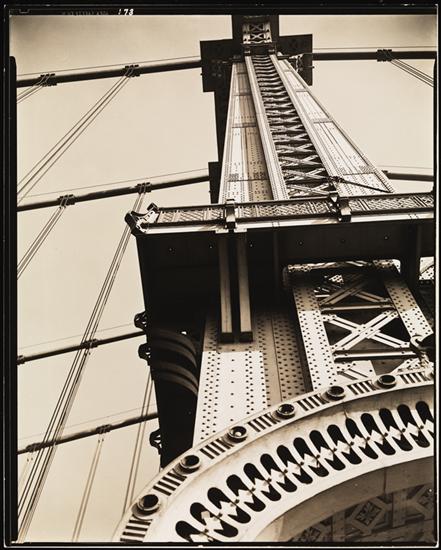 Description Looking straight up one of the Manhattan Bridge's supporting piers, taken from the southern pedestrian walkway.