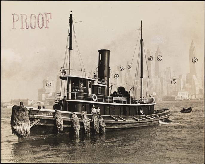 Description The tugboat "Watuppa", owned by the McCarren Towing Line, taken from Pier 5, East River, Brooklyn.