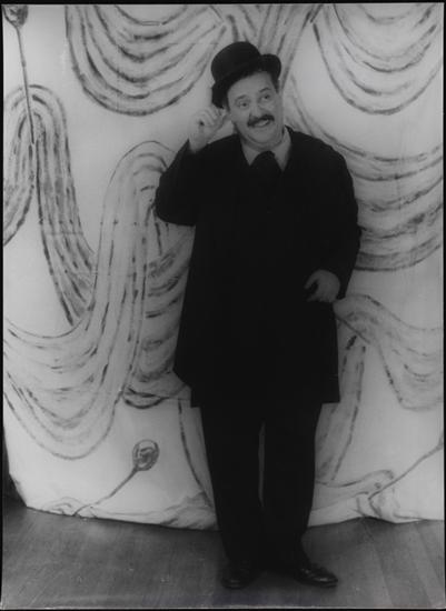 Inscription / technical details In ink, on verso: Zero Mostel as / Leopold Bloom in Ulysses in Nighttown / IV qq 16 / October 29, 1958; stamped on verso: PHOTOGRAPH BY CARL VAN VECHTEN / 146 CENTRAL PARK WEST / CANNOT BE REPRODUCED