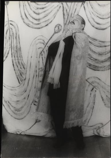 Inscription / technical details In ink, on verso: Zero Mostel as Leopold Bloom / in Ulysses in Nighttown / IV qq 5 / October 29, 1958; stamped on verso: PHOTOGRAPH BY CARL VAN VECHTEN / 146 CENTRAL PARK WEST / CANNOT BE REPRODUCED W